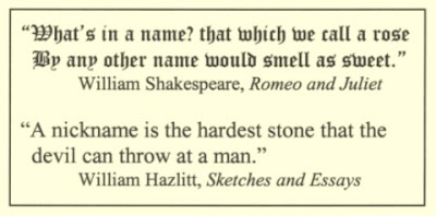 Either of these questions is worth thinking and writing about. Here is what I wrote, mostly about nicknames: